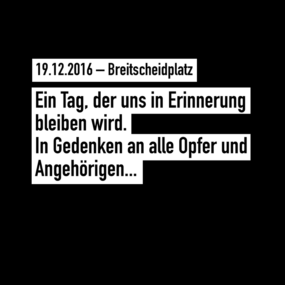 Breitscheidplatz – 19.12.2016 An diesem Tag jährt sich das Ereignis nun zum ersten [...]